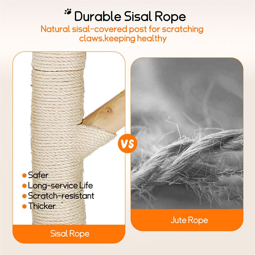 • Comfort Meets Fun: Equipped with plush cushions and a sisal-covered post, this cat tree offers the perfect mix of comfort and entertainment, keeping your cat engaged and your furniture safe.