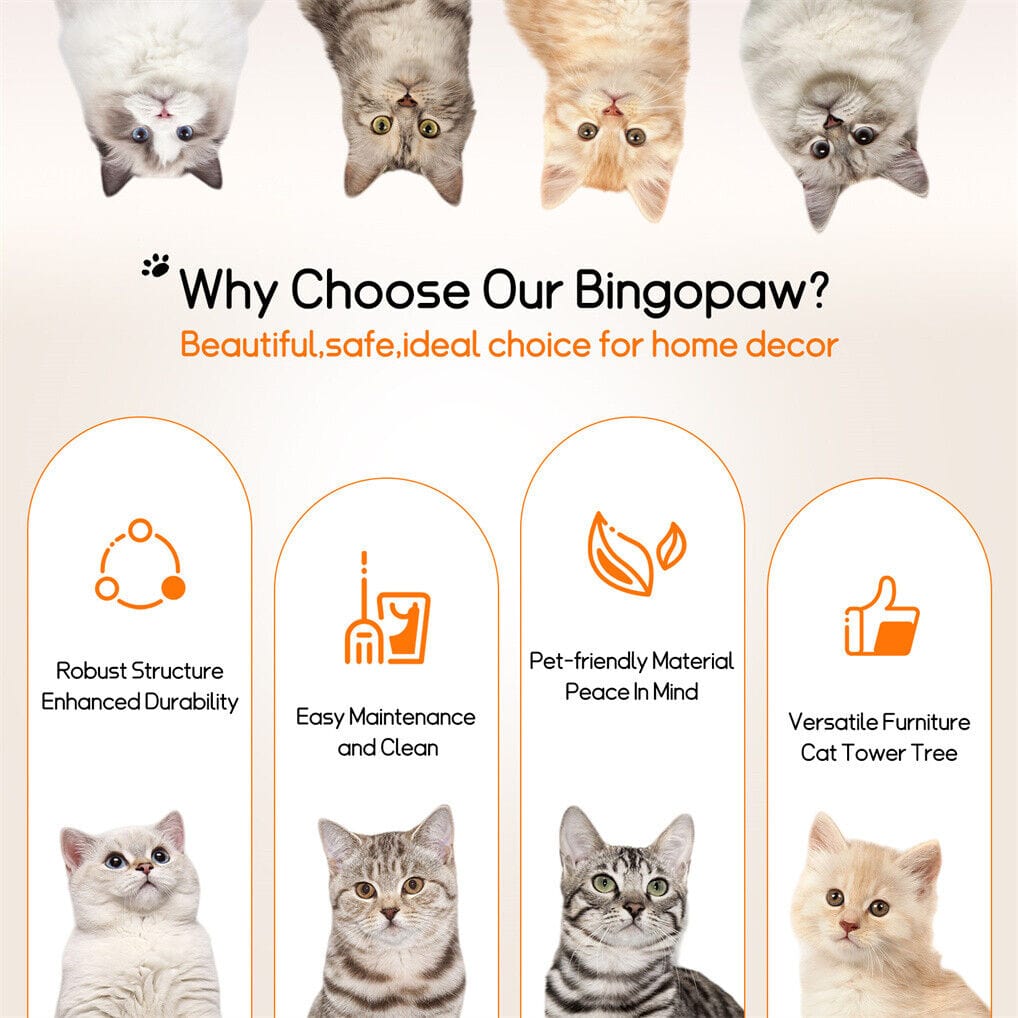 • Multi-Cat Friendly: Boasting multiple levels with cozy spots and a playful toy ball, this cat tower is ideal for households with more than one feline, promoting active play and relaxation.