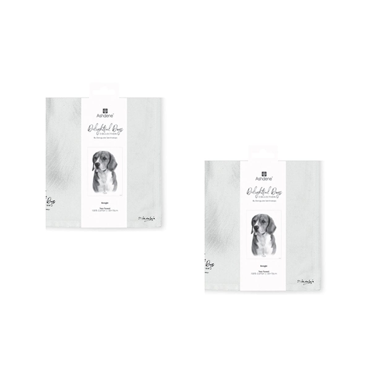 • Set of 2 Delightful Dogs Cotton Kitchen Tea Towels 50 x 70 cm Beagle
